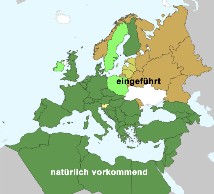 • Verbreitungskarte: Euro+Med PlantBase Project. Botanical Museum, Helsinki, Finland 2018; Data from BGBM Berlin-Dahlem, Germany. Source: World Checklist of Selected Plant Families (2010), © The Board of Trustees of the Royal Botanic Gardens, Kew;